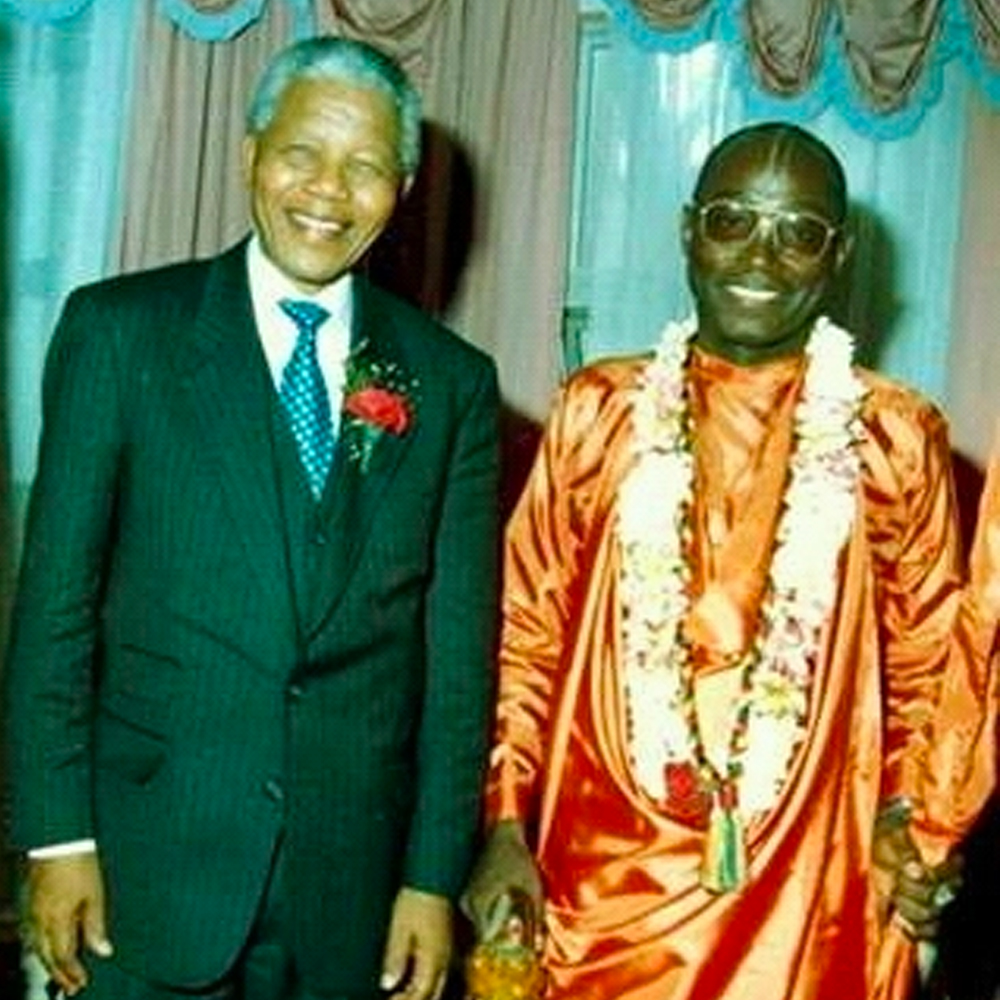 A specialist in international relations and conflict resolution, B.T. Swami constantly travelled around the world and had become a spiritual consultant to many high-ranking members of the United Nations, to various celebrities, and to several chiefs, kings, and high court justices. In 1990 he was coronated as a high chief in Warri, Nigeria in recognition for his outstanding work in Africa and the world. In recent years, he met several times with then-President Nelson Mandela of South Africa to share visions and strategies for world peace.